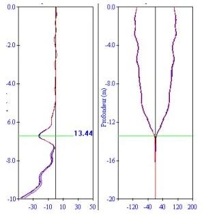 CS97 除了完整性試驗之外 , 亦可擴充為平行震測系統 , 用以檢測牆與基樁的長度以檢視錨錠的深度 , 可用於既有結構上 , 而不需去牆或基樁的頂部進行試驗 。預先鑽一個與基樁平行並比預設的樁長深幾米的孔 ( 越近越好 ), 埋入約 60mm ψ的塑膠管 , 底部密封並充滿水 , 將接收器放入管中 , 在每一量測深度 , 敲擊樁體產生訊號 , 量測訊號傳遞時間 , 當感應器低於基底或一個破裂處時 , 則聲速將會改變 , 這在紀錄圖上可顯示一個破裂點 (break), 即可檢測出基樁長度。
