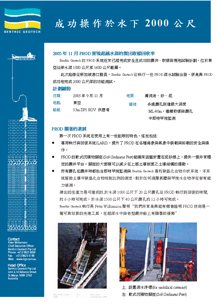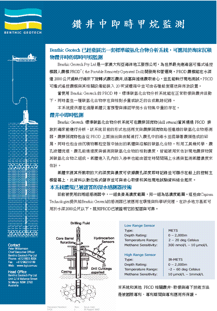 (5)我們的夥伴Benthic Geotech Ltd提出METS可特別應用於離岸的深水鑽井監測。